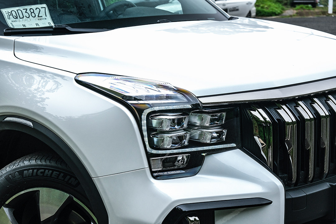前后杠也是改款外观的调整重心,现款车型的前后杠黑塑料装饰比重较大,塑料感较强,改款后采用竖条型雾灯,雾灯周围轮廓采用矩形的饰件,使得整车轮廓更方正,搭配银色下护板,可以说相当“硬核”。