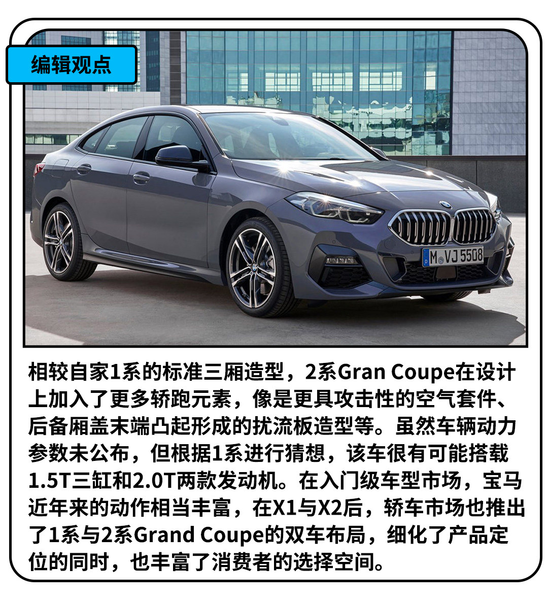 近日,互联网上公开了一组宝马车型的国内路试谍照,虽然车身表面贴满伪装材料,但结合2020年宝马的新车动向与官图分析,这款神秘的新车十有八九是宝马2系Gran Coupe。该车早在2019年的洛杉矶车展就已亮相,产品定位紧凑型轿跑,而在市场上的主要竞争对手自然是奔驰的CLA级。