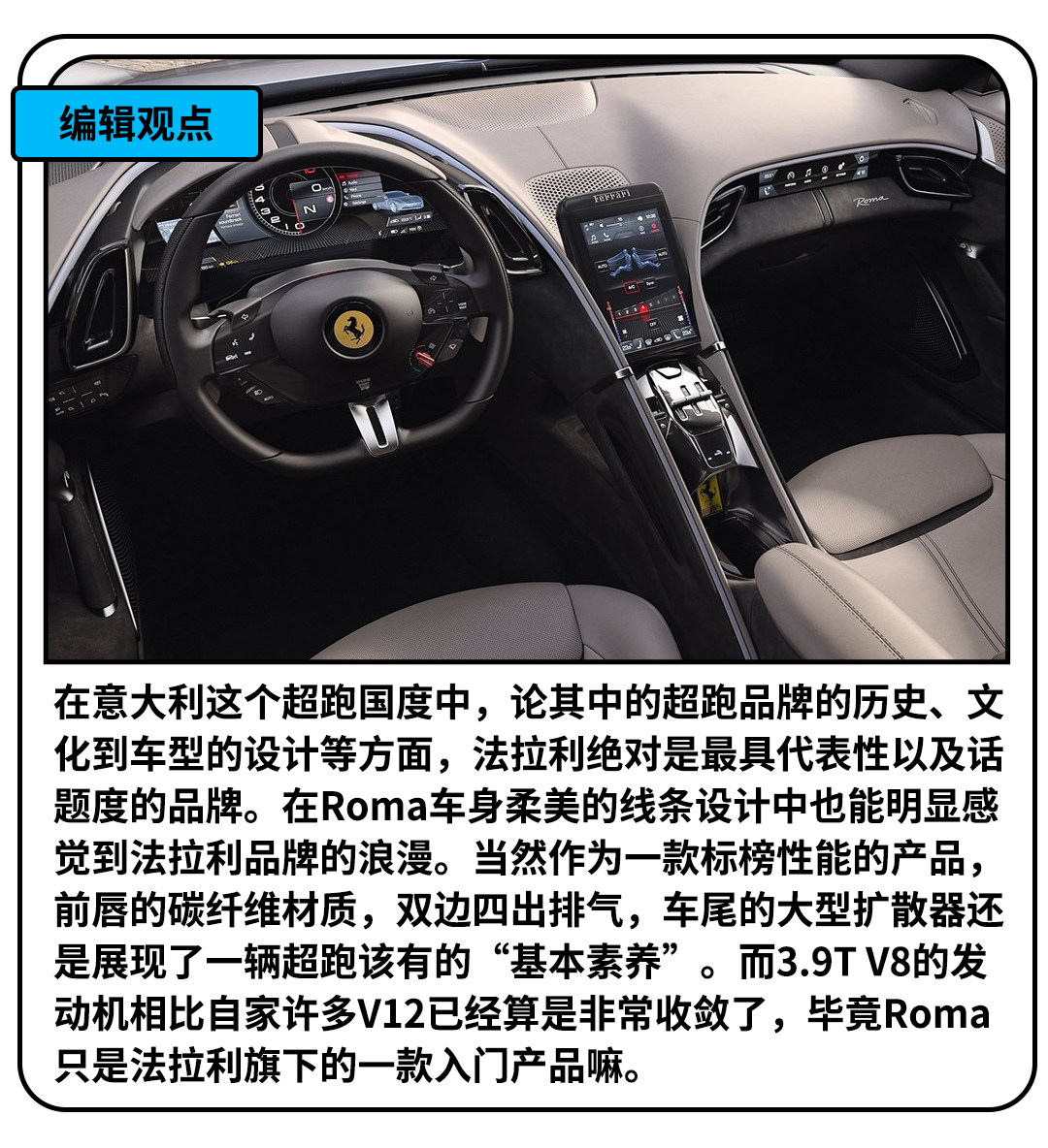 日前从法拉利官方获悉,旗下全新跑车法拉利Roma正式上市,售价为238万元。法拉利Roma是一款中置发动机布局的双座跑车,其搭载了一台3.9T V8发动机,最大功率可达620Ps,而车辆的0-100km/h加速仅需3.4秒。