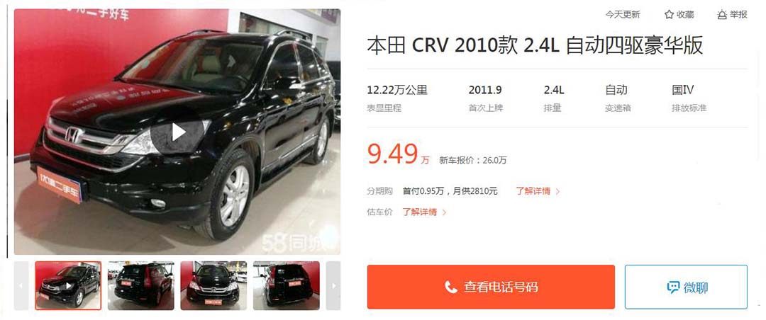 印象中,SUV比轿车贬值更快,因为在售价上同平台的SUV比轿车虚高,但我们从本田CR-V的保值率来看,似乎并不都是这样,当年售价23.98万的2010款 2.4L 自动四驱豪华版,在10年后还能卖8.5-9.49万元。