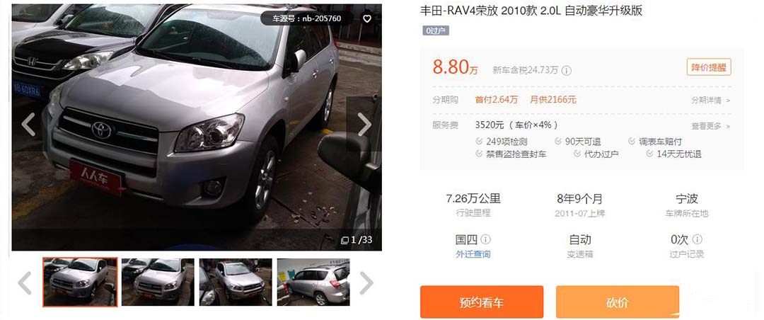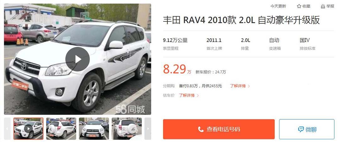 RAV4荣放的保值率同样不错,从我们查询的结果来看,但年售价22.78万的2010款 2.0L 自动豪华升级版,10年后的车况良好的二手车能卖7.98-8.8万元。