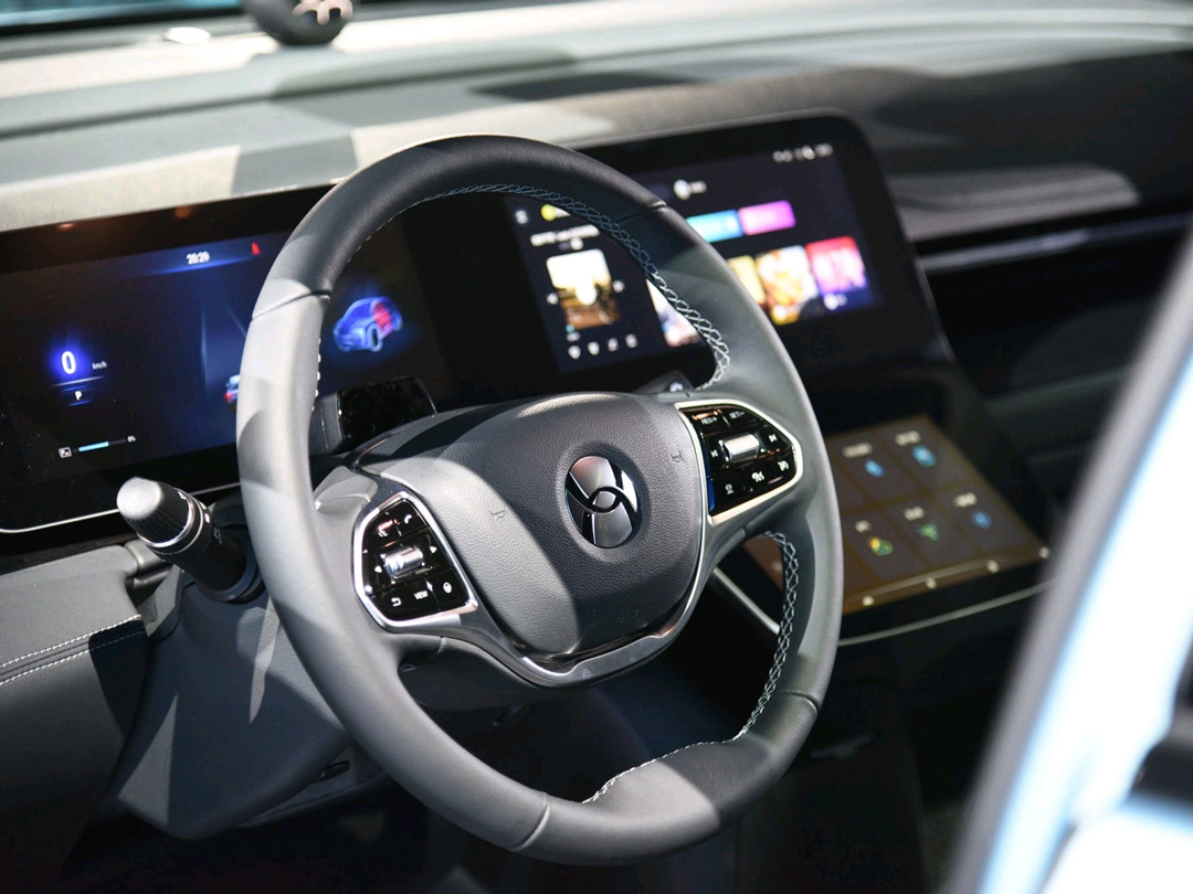 其中,内饰较为亮眼是采用了三体联屏中控屏幕设计,大量取消了实体按键,以AI人工智能语音和触摸屏控制取代了实体按键,这是未来的车内人机交互方式。