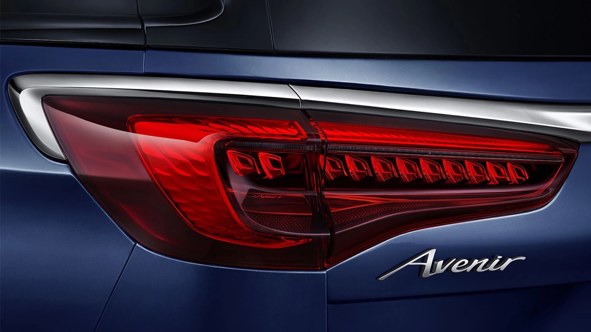 相比起旧款GL8 Avenir,新款在尾部加入了贯穿式镀铬饰条;尾灯组同样进行了重新设计,内部由11颗菱形样式的横向LED灯珠组成,同时与前灯组一致带有流水转向效果。