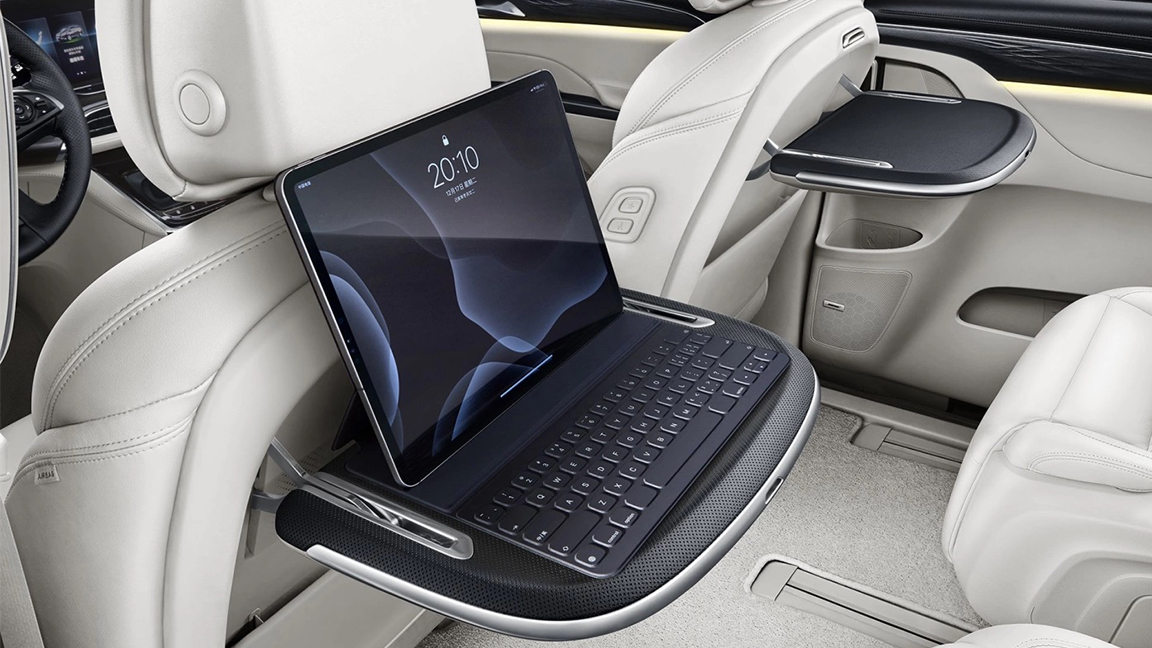 配置上二排座椅支持前后电动滑动功能、通风按摩,并提供手机放置槽以及USB接口等。此外座椅之间留有170mm的中间过道,方便第三排乘客的进出。其中6座版车型的第二排还拥有小桌板,它的表面也是由皮质包覆,能放置笔记本电脑,符合商务出行的需求。