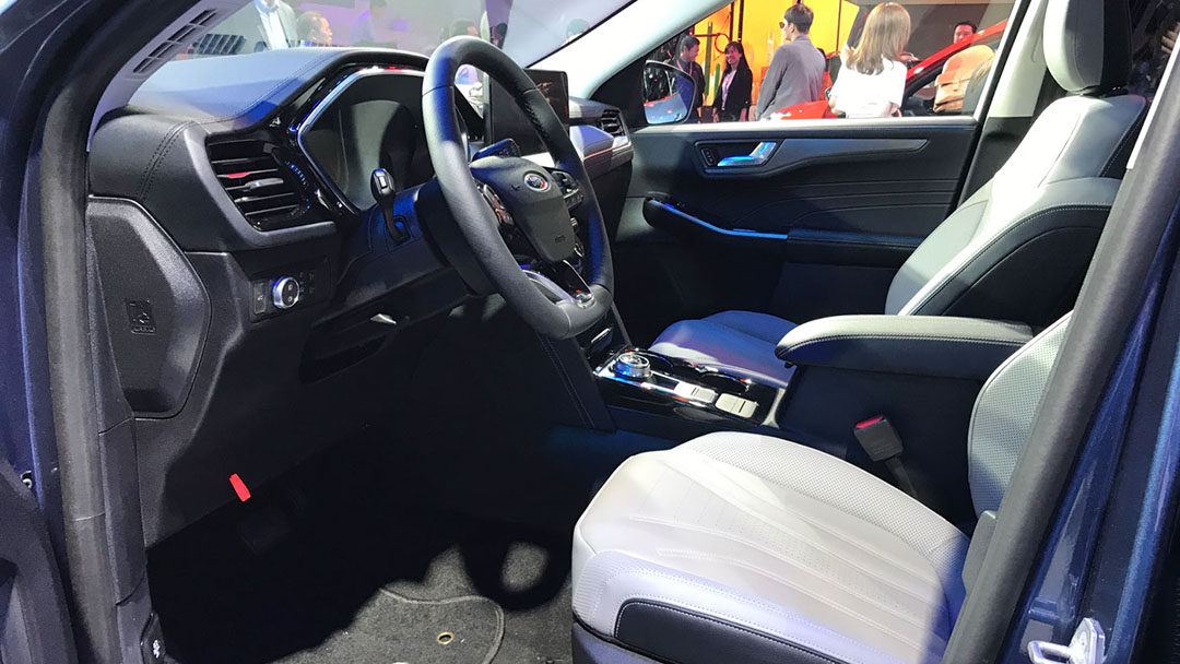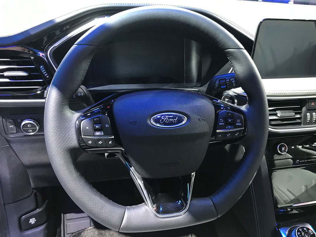 车厢部分,出于锐际4584*1882*1688的车身尺寸以及2710mm的轴距,空间在同级中属于较高水平。内饰则是明显的最新家族式设计,可以看出与福克斯所相似的地方,而全液晶仪表盘以及带有最新Sync系统的悬浮式中控屏幕,就是内饰的最大亮点。