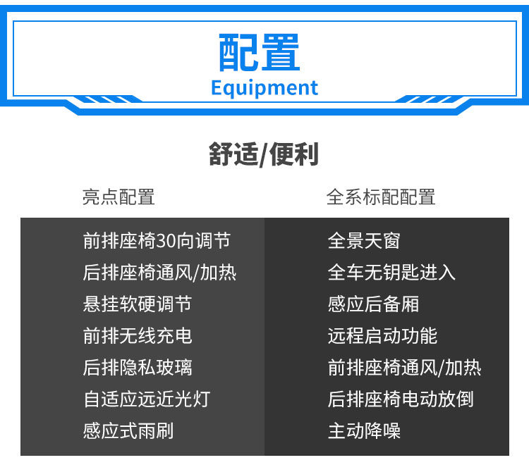 飞行家在舒适性配置方面也是相当丰富的,全景天窗、主动降噪、前排座椅通风和加热、全车无钥匙进入、远程启动等高档配置均为全系标配,配置起点可以说是相当高的。而教授测试的这款全驱高性能插电式混动版配备有强大的30向调节前排座椅,后排座椅拥有通风及加热功能。