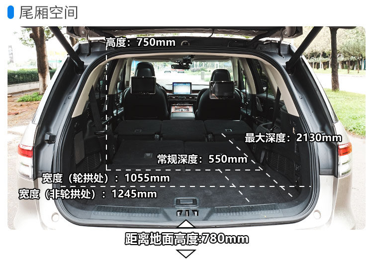 一般情况下,7座SUV的尾厢装载能力容易受到第三排座椅的影响,但飞行家在正常使用第三排座椅时,尾厢容积依然能够达到302L;按下电动折叠按钮自动放下第三排座椅靠背后尾厢容积可达986L;而在放下第二排座椅后,容积更可拓展至惊人的2044L,能够轻松装载大型物品。