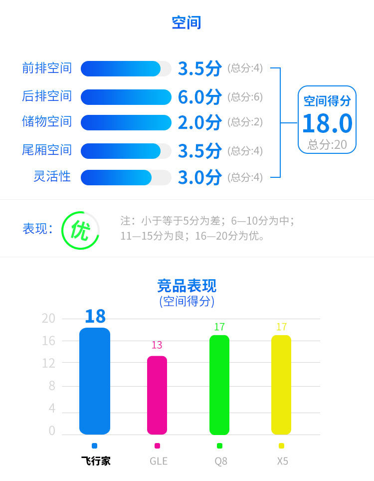 空间总结:正如教授所期待的那样,作为美式大型豪华SUV的飞行家拥有相当出色的乘坐空间表现,而丰富实用的车内储物空间以及硕大的尾厢更是惊喜,在空间方面超越同级对手可以说是毫无悬念。