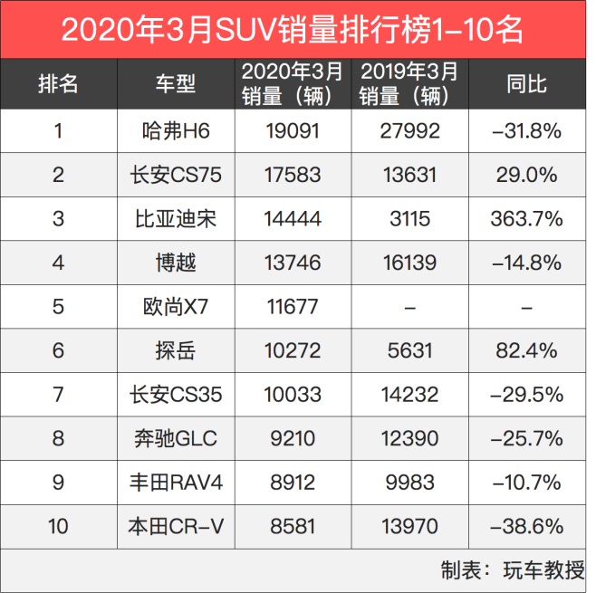 3月份汽车销量新鲜出炉,SUV排行榜前五的位置都被自主品牌所占据,看得出自主品牌在SUV领域还是非常受欢迎的。而合资品牌销量第一的,则是上市不到一年半的一汽-大众探岳,月销量10272辆,较去年同期增长了82.4%。