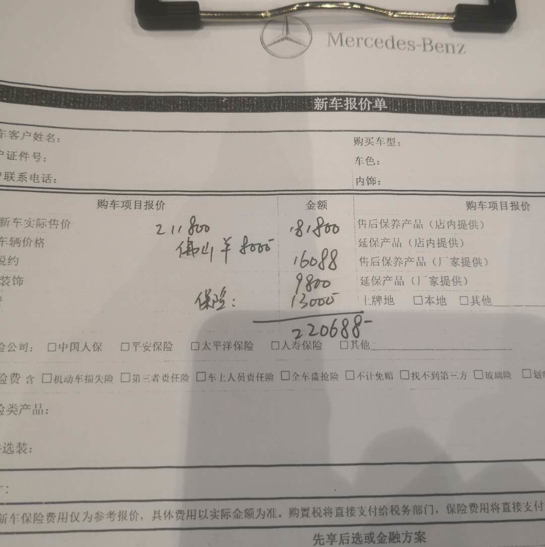 走进奔驰的4S店,喧闹的人群让买买君有些怀疑现在的车市寒冬,或许这就是奔驰的与众不同!奔驰的优惠是典型的综合优惠,买奔驰想要优惠就要全包(包上牌、包上保险.....就是一条龙服务),如果没有广州的指标,或者是外省过来购车,不好意思,这优惠还真不一定有(当然,这只是针对买买君去这家店)。此外,订车方面,不是热销车型基本要等5个月左右,真是“想买不一定有,有也不一定卖!”