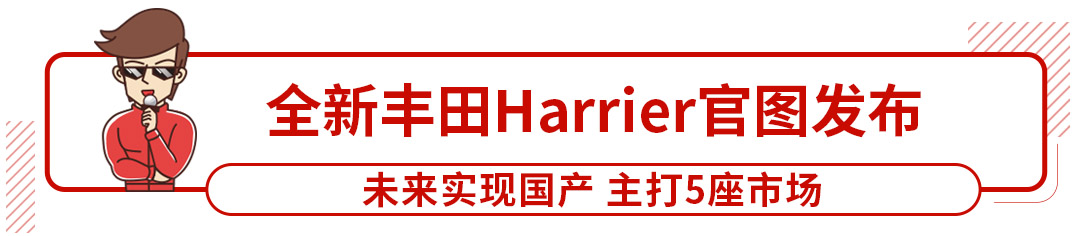 丰田发布了全新一代Harrier的官图,新车未来将会引入国产并分别推出一汽丰田和广汽丰田两个版本。新车主打中型5座SUV,将与冠道等同级车型竞争。其车身尺寸为4740/1855/1660mm,轴距为2690mm,整体尺寸相比现款RAV 4荣放和雷克萨斯NX都要更大。外观方面全新Harrier采用了简洁、犀利的设计手法,倾斜的D柱和上扬的腰线都显得更加运动,尾部拥有贯穿式尾灯,下方有镀铬排气口。配置方面新车将标配8英寸中控屏+6扬声器的娱乐系统,并提供多项选装配置。动力方面提供2.0L燃油版和2.5L混动版可选,其中2.0L发动机最大功率171马力,匹配CVT变速箱,拥有前/四驱车型;混合动力车型前驱版最大功率218马力,四驱版222马力,匹配E-CVT变速箱。