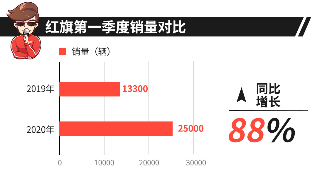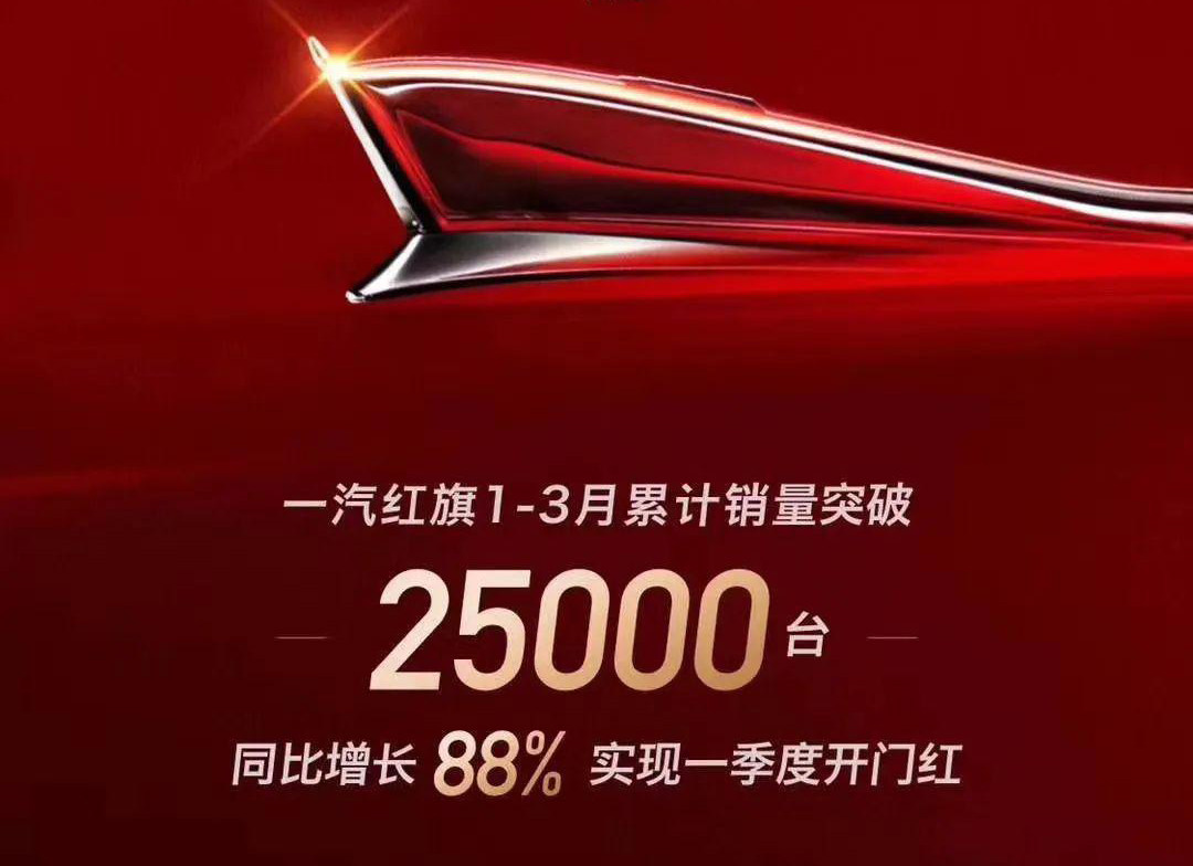 三个月累积来看,今年第一季度,红旗品牌销量突破2.5万辆,同比增长88%。光看同比增长的销量,其实红旗汽车已经达到了很多车企难以企及的目标。但如果结合大趋势来看,更能深知这个销量数据的来之不易。