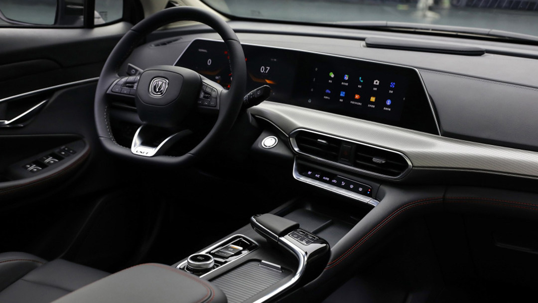 最后是长安最新的动力总成,新车搭载了蓝鲸NE 1.5T直喷发动机,最大功率180马力,峰值扭矩300牛·米,更重要的是,其热效率达到40%,匹配的7速双离合变速箱综合传递效率为94.3%。就数据而言,相比大部分外国品牌都要优秀。