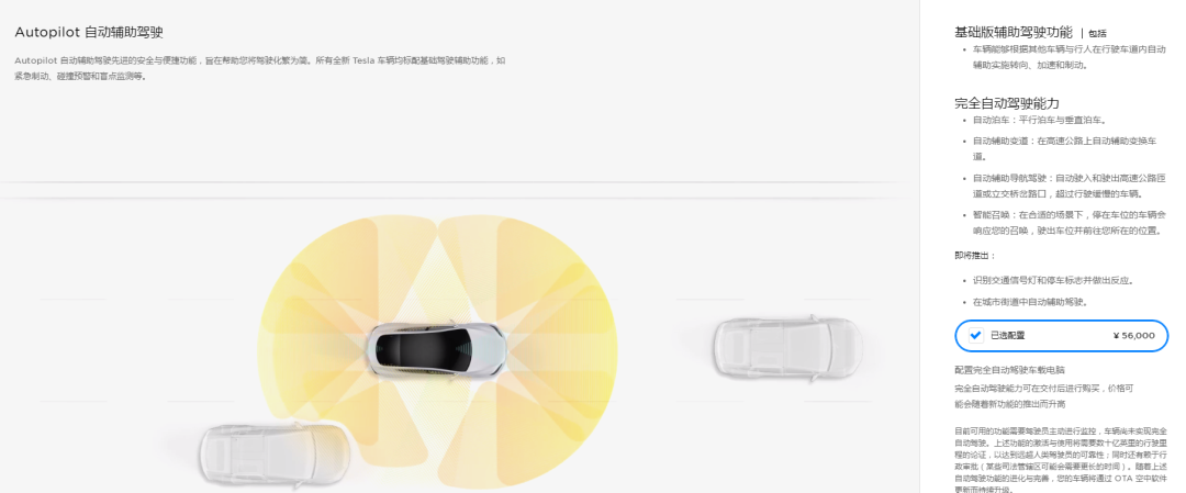 而当你花费56000元,解锁它全部的自动驾驶功能,在理想状态(法规允许前提下)时,车辆是能够实现自动驾驶的。