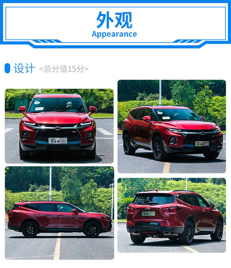 雪佛兰开拓者一共有三种不同外观的车型,分别是普通版、Redline版、RS版,它们外观上的区别在于格栅造型、包围,以及一些专属装饰。本次试驾车型为顶配的RS版,从图片来看,大家也能发现这款车外观上的凶悍之处,它的前脸、包围、轮毂造型也让人觉得这是一辆高性能的SUV。