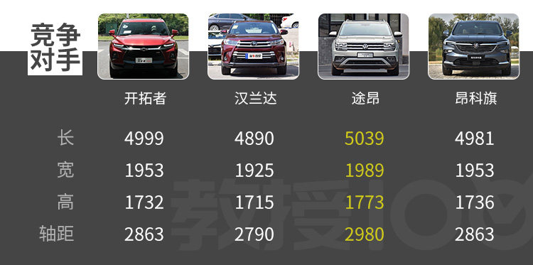 其实从开拓者的定价来看,有以越级的姿态对抗汉兰达的架势,同样的价格下,有着更大空间的开拓者或许更能得到一些人的青睐。通过尺寸对比我们也可以知道它和途昂还有一些差距,其实从通用的战略来看,昂科旗才是挑战途昂的战略选手。