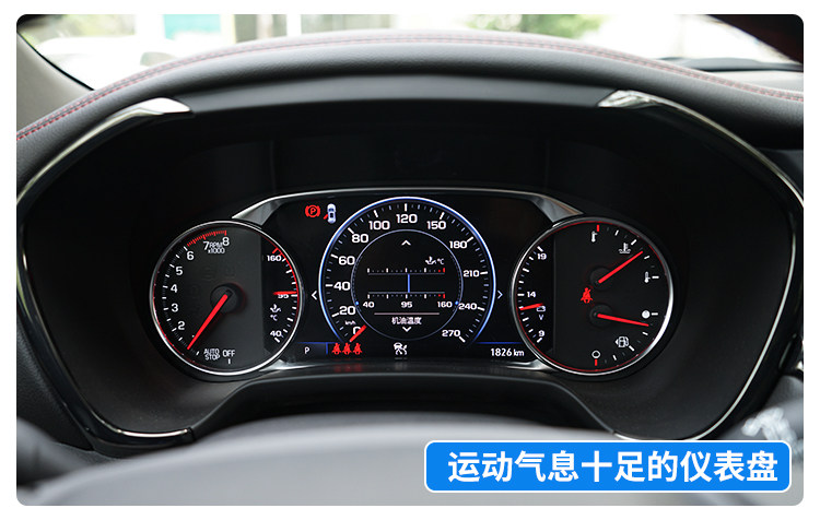 开拓者采用了新样式方向盘,看上去比较厚重,跟其外观很搭。液晶仪表盘比较有意思,没有像现在很多车型一样用全液晶仪表盘,而是机械式+液晶这样的组合模式,指针还采用了红色,可能是想保留一点野性和运动感吧,挺棒的。液晶屏显示的功能也比较齐全,车辆信息、驾驶模式的选择等,上手没难度。