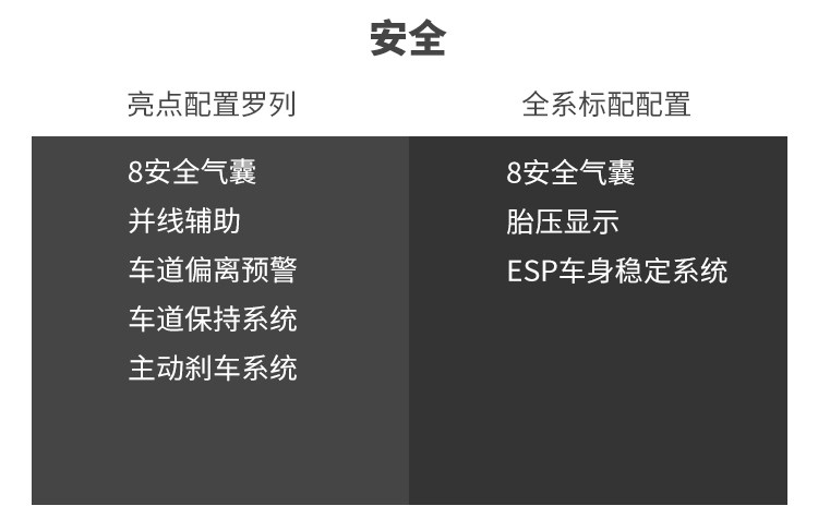 开拓者全系标配8气囊、ESP等主被动安全配置,在这个级别的车型中也是应该。顶配车型上还有主动刹车、车道保持等配置,表现不错,不过道路标识识别这一配置没有,让人想不通,这也让开拓者离满分差了那么一些。