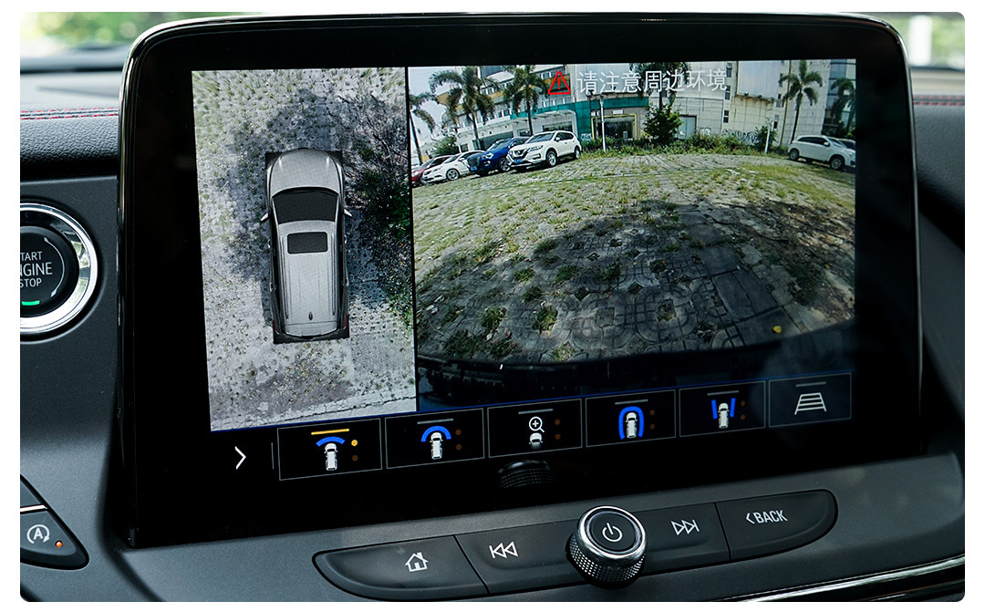 全系标配倒车影像不错,测试车型还有360°全景影像、车侧盲区预警等配置,倒车、挪车更安全,对一辆这么大体积的车来说很实用。