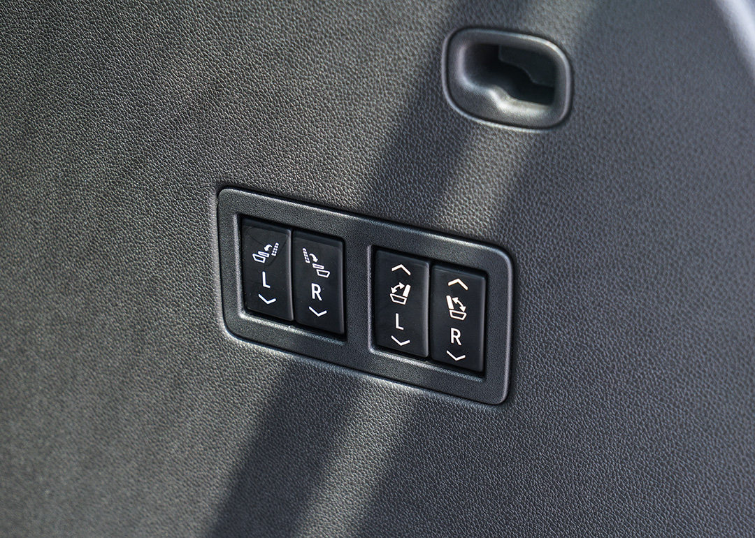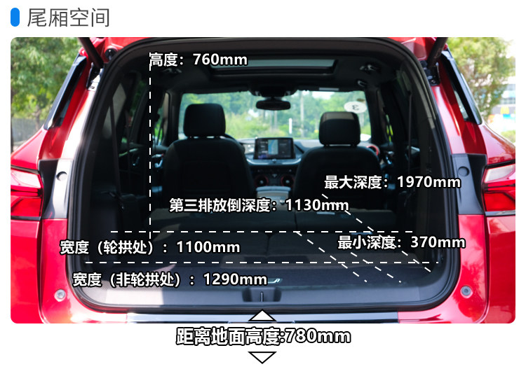 尾箱可以电动控制二三排座椅,第二排座椅可以电动放下但不可以升起。第三排即可电动放下又可升起,减少了人工操作的艰难与繁琐,太实用了。通过后备厢的数据大家也可以知道开拓者的后备厢空间了,它的两排座椅都可以全平放倒,空间的利用率很强。第三排放倒的情况下,开拓者有着1130mm的进深,容积非常大。如果第三排立起来,后备厢的空间很就小了 ,这也是很多7座车的无奈之处了,有得有失吧。