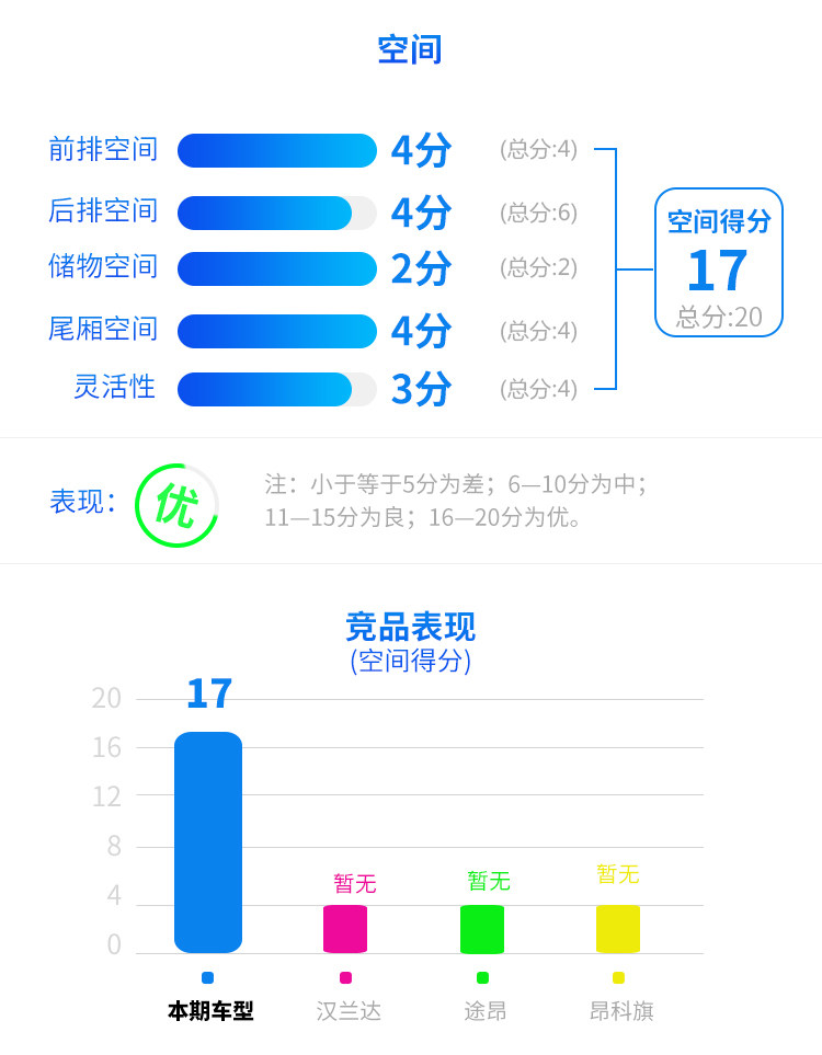 小结:开拓者的空间不能说领先同级别车型,不过很多人性化的配置确实让人眼前一亮。舒适性照顾到了第三排的乘客,所以7座布局并不鸡肋。对于空间有需求的用户来说,这款车是值得买的。