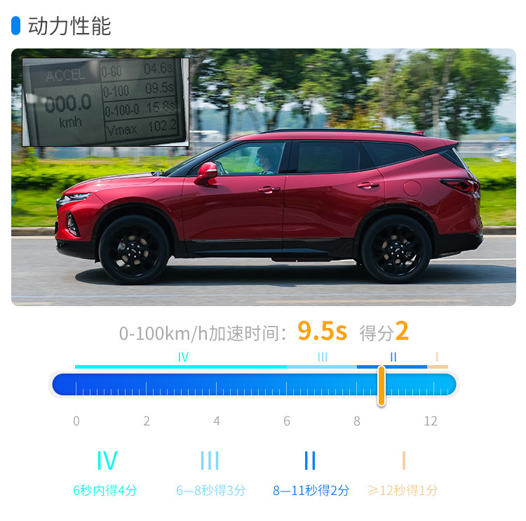 开拓者四驱车型的的车重为2吨,如此大的重量也就能猜到开拓者的加速成绩了,9.5S的零百加速成绩算不得太好,但可以理解。大家通过分段式的加速表也可以知道,开拓者在0-80km/h速度区间时提速很均衡,如果能提高9挡的换挡时间和逻辑,相信加速时间还能再快。