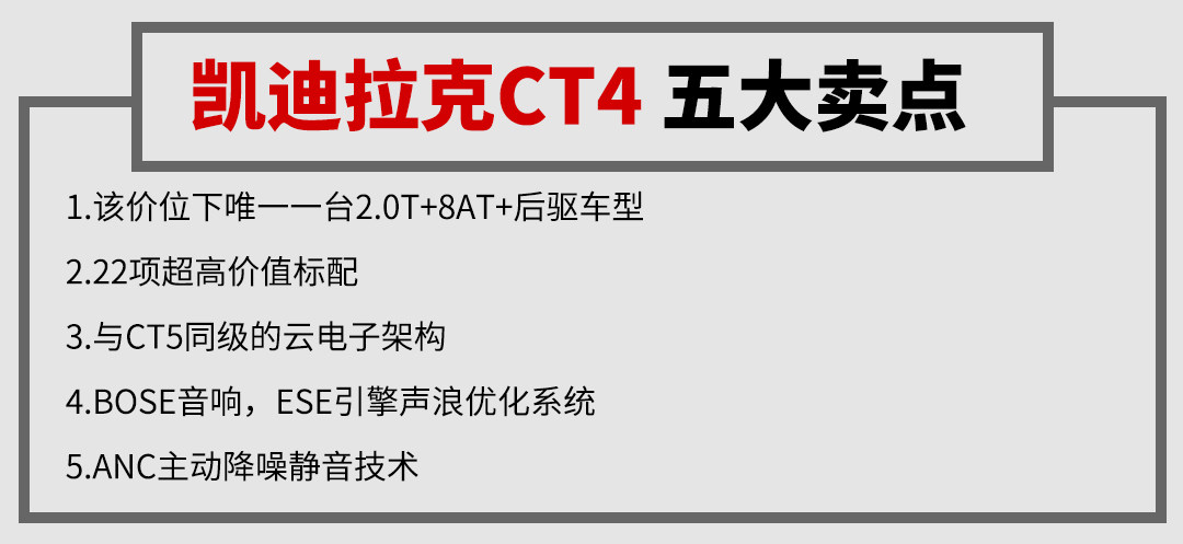 没错,这是凯迪拉克常用的田忌赛马策略,用低半级的价格提供高半级的车型。凯迪拉克CT4的售价是24-26万,是这个价位下唯一一台2.0T+8AT+后驱的轿车,更何况以凯迪拉克一贯的商务政策,CT4的价格还有下探空间,届时其终端市场价在20万出头,那么其竞争力将会是非常夸张的。