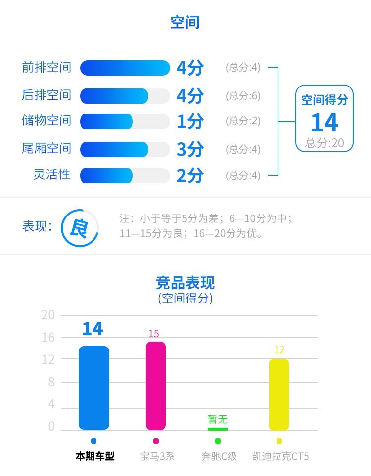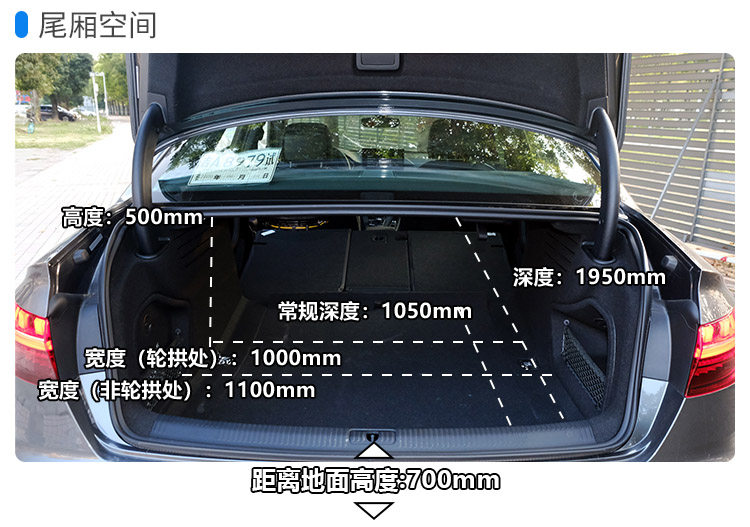 小结:对于家庭用车来说,奥迪A4L的空间完全是绰绰有余的。毕竟到来这个级别,尺寸上的优势已经是一个很好的保证,所以购车的时候在空间方面没有必要有过多的纠结和对比。
