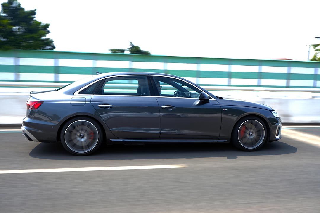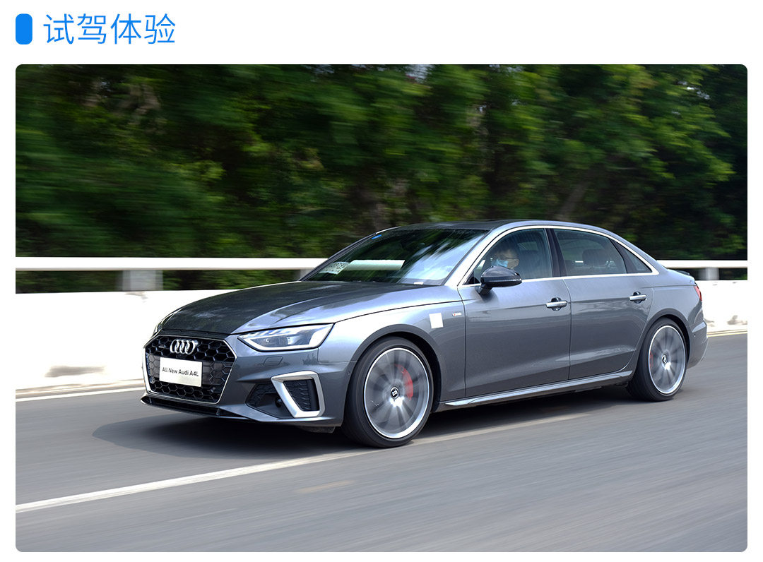 试驾车型为2.0T 45TFSI,也就是2.0T的顶配车型。在外观上还采用了S-line的运动外观套件,除了车身侧面的标识外,红色的刹车卡钳也是非常瞩目,进一步提升了奥迪A4L的运动感。