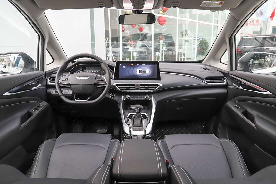 环抱式内饰布局与层次感强烈的仪表台营造出科幻的舱内氛围,哑光银色饰条的引入对舱内质感的提升大有裨益,假若能选用电子挡把将更上一个档次。