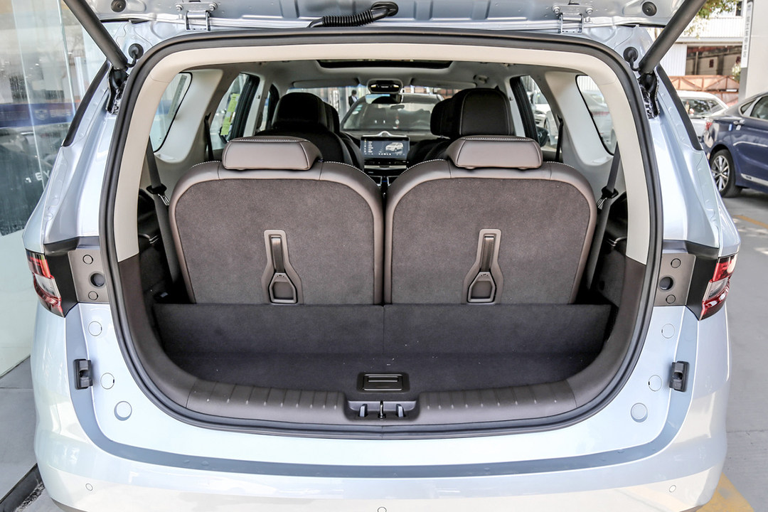 嘉际供2+2+2、2+2+3、2+3+2三种座椅布局可选,工程师将动力电池组安放在第二排座椅下方,没对乘坐空间造成影响,反而是油箱容积被压缩了,比传统燃油版车型的油箱容积减少了8L,与竞品比亚迪宋MAX DM同为52L。