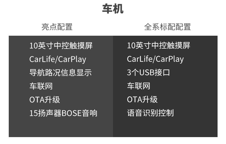 车机系统方面也有着不错的表现,10英寸中控触摸屏显示效果出色,响应速度也比较快;苹果CarPlay和百度CarLife为全系标配,而NFC功能的加入则让手机与车机之间的互联变得更加方便快捷。
