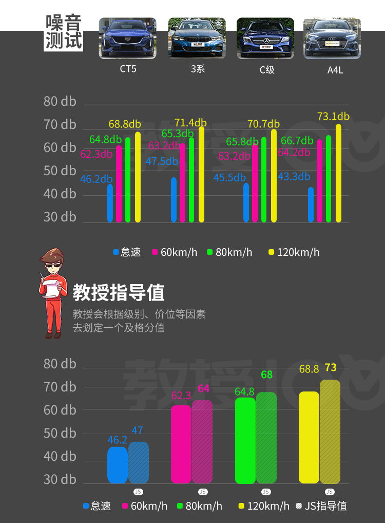 得益于全系标配的前排双层隔音玻璃和主动降噪系统,凯迪拉克CT5在噪音测试环节取得了优秀成绩。