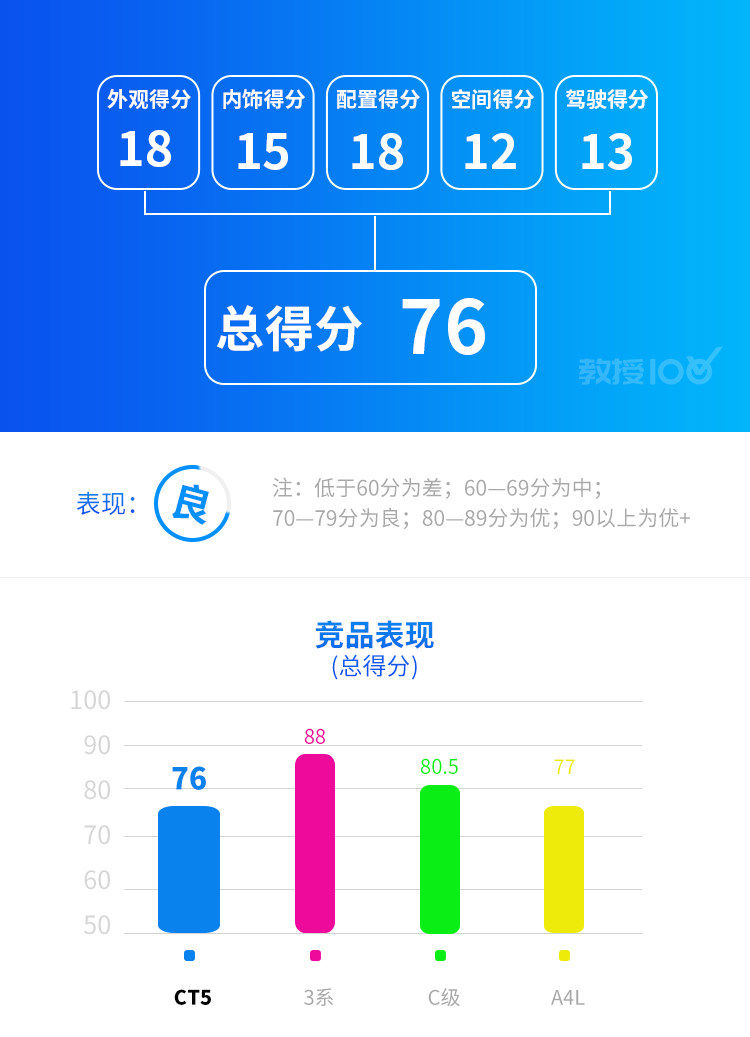 此外,CT5全系标配了胎压显示系统、碰撞预警和行人监测功能,而教授此次测试的顶配车型则增加了低速主动刹车功能,在安全配置方面还是比较丰富的。