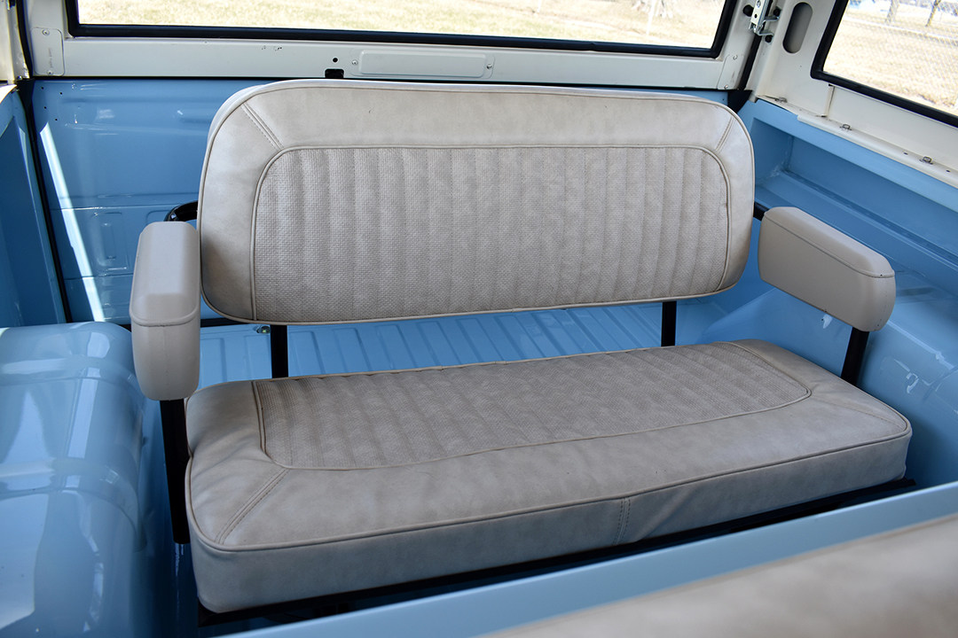 为了兼顾强大功能性和家用舒适性,福特Bronco应运而生,车身类型有短轴皮卡、Wagon(瓦罐)版、还有无门敞篷版,方正的车身使得Bronco的空间利用率非常高;而且采用非承载式车身底盘,所以Bronco拥有非常强大的实用性和通过性,与当时同期的Jeep的CJ系列对着干。