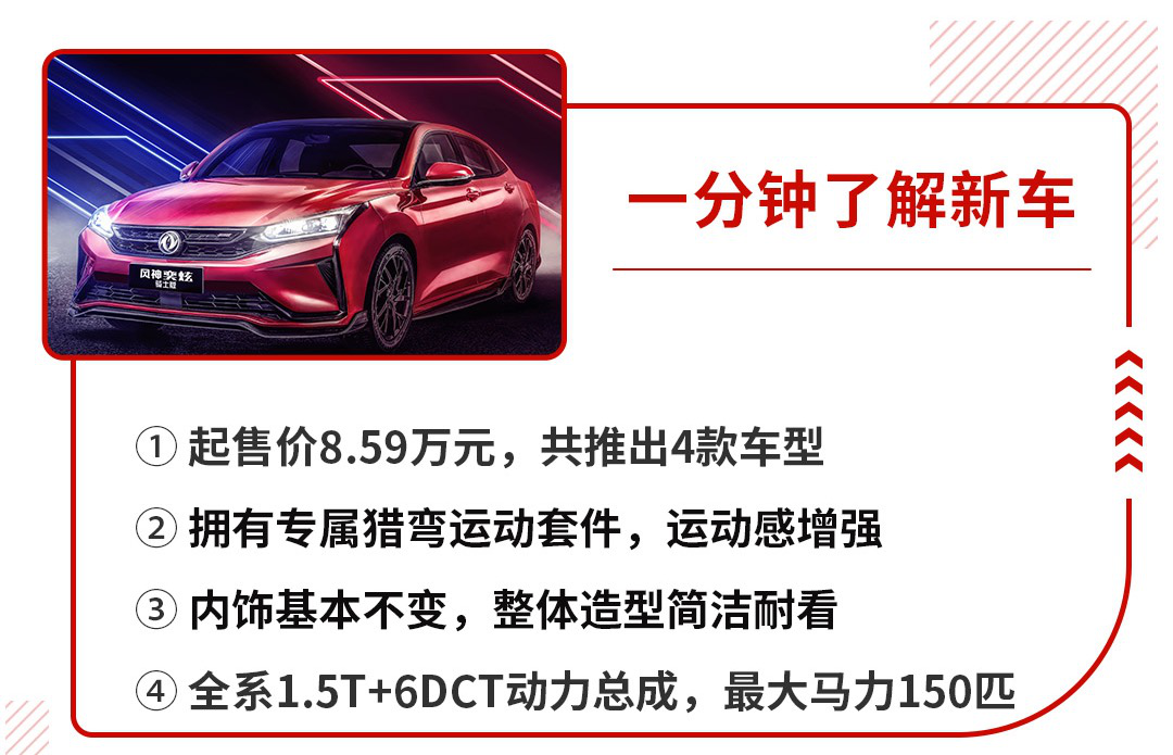 就在4月18日,东风风神奕炫骑士版正式上市,售价区间为8.59万元-9.54万元,共计4款车型,新车正是在风神奕炫的基础上,搭载了官方推出的运动外观套件,整体更具运动气息。