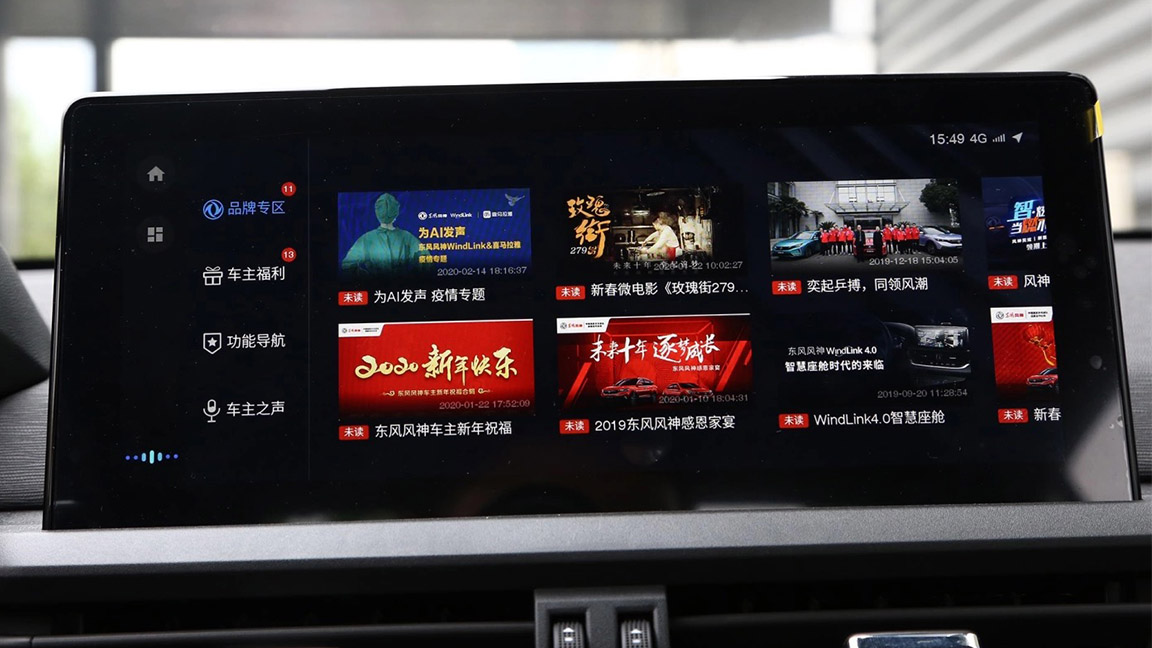 其10.25英寸的中控屏内搭载了WindLink智能人机交互系统,教授比较喜欢该系统的AI页面设计,功能一目了然且画面清晰度较高,据了解该系统还与百度进行了合作,能支持百度Carlife以及语音控制功能。