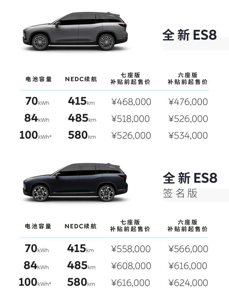 蔚来汽车于4月19日正式交付首辆2020款蔚来ES8车型。新车最大的变化是针对电机及电池组进行了调整,其100kWh版本的NEDC续航里程已达580km。同时,2020款蔚来ES8还搭载了全新人工智能系统NOMI Mate 2.0,并将推送最新的NIO OS 2.6.0系统。2020款ES8全系车型的NEDC续航里程数据有了明显提升,可以说是弥补了老款车型在续航里程方面的痛点。老款车型支持付费换装100kWh电池组,据蔚来方面透露,从80kWh升级到100kWh的费用仅需10800元,相比大幅提升的续航能力来说,教授认为这是极具诚意且非常划算的。2020款车型在售价方面相较老款车型有所提高,其中基准版六座车型补贴前售价为47.6-53.4万元,七座车型补贴前售价为46.8-52.6万元。