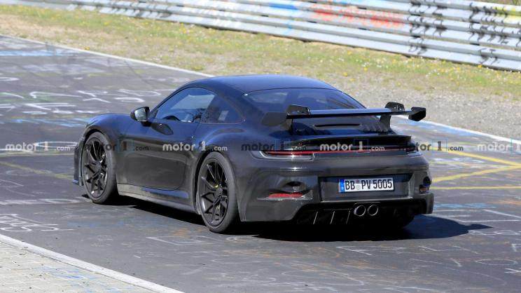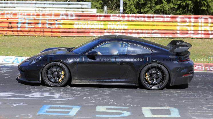 全新一代保时捷911自2018年洛杉矶车展发布以来,已相继发布了911 Carrera、Turbo等系列产品。日前,外媒前方拍摄记者就拍摄到一组全新911 GT3版本车型的低伪装谍照。与此前拍摄到的测试车谍照相比,本次曝光全新911 GT3的谍照已经能清晰看到其部分细节。新车在空气动力方面进行了重新考虑,前进气格栅造型被重新设计且开口更为夸张,前备箱盖加入的两个导风槽让新车看上去更为战斗。车尾部分其伪装覆盖仍然较多,但能看出新车中置双出的排气设计,而夸张的尾翼及后扩散器等尺寸都非常大,相信能为新车提供更强大的下压力。动力方面,全新911 GT3或将搭载4.0L自然吸气水平对置六缸发动机,根据外媒预测,新车的最大功率或将超过550马力。有关该车的具体发布时间目前还没有准确消息,教授将会为大家带来持续的关注。