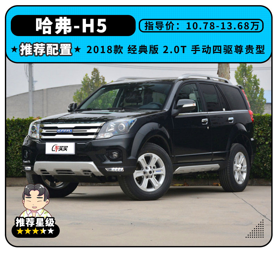 正是这点,使得哈弗H5让不少当初还是热血青年但手头钱不多的中年人,即使买不起陆巡霸道也能圆了跑西藏和越野的梦。不过,较高的油耗、较差的操控性和舒适性,还有全系只有手动挡,让哈弗H5不太适合城市驾驶。更关键的是现款H5暂无国6版本,使其无法在大部分一二线城市上牌。