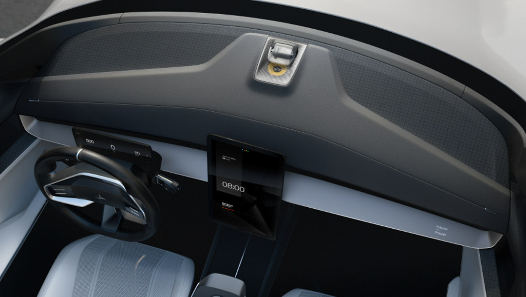 虽然从材质上看似乎比较廉价,但这并不影响沃尔沃对内饰科技感上的打造。特别是中控部分的设计,双层内饰面板前方使用了两块液晶显示屏为车主提供信息交互。一块位于方向盘后方,用于显示主要的行车信息,而另外一块则是以悬浮的方式取代了极星2车型上原本的中控屏幕。