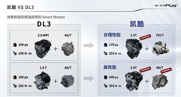 日前,东风悦达起亚正式宣布全新一代K5开启预售,新车中文名字也被正式定名为凯酷。全新一代K5凯酷其前脸部分采用了较为夸张的设计风格,官方称之为“Tiger Nose Evolution”(虎鼻式进化),相较以往虎啸式前进气格栅,新车前脸设计更具立体感。溜背的造型同样作为全新一代K5凯酷的设计亮点,运动气息及视觉冲击力均十分到位。K5凯酷在尺寸方面表现相较海外版本有所增加,分别在车身长度上增加了75mm,而轴距则增加了50mm,整车的长宽高分别为4980mm/1860mm/1445mm,轴距为2900mm。内饰方面,大尺寸双联屏设计抓人眼球,但同时依然保留更多的物理按键。大面积的皮质包裹材料搭配木纹饰板及钢琴烤漆面板颇显质感。动力方面,K5凯酷提供两款动力总成,分别为170马力的1.5T发动机,峰值扭矩为253牛·米,匹配7速双离合变速箱;2.0T发动机最大输出功率为240马力,峰值扭矩为353牛·米,搭配8AT变速箱。全新一波韩系车一直以来都被国内车迷朋友所期待,中型车市场作为国内竞争最激烈的细分市场,全新一代K5凯酷的加入将会更具看点。