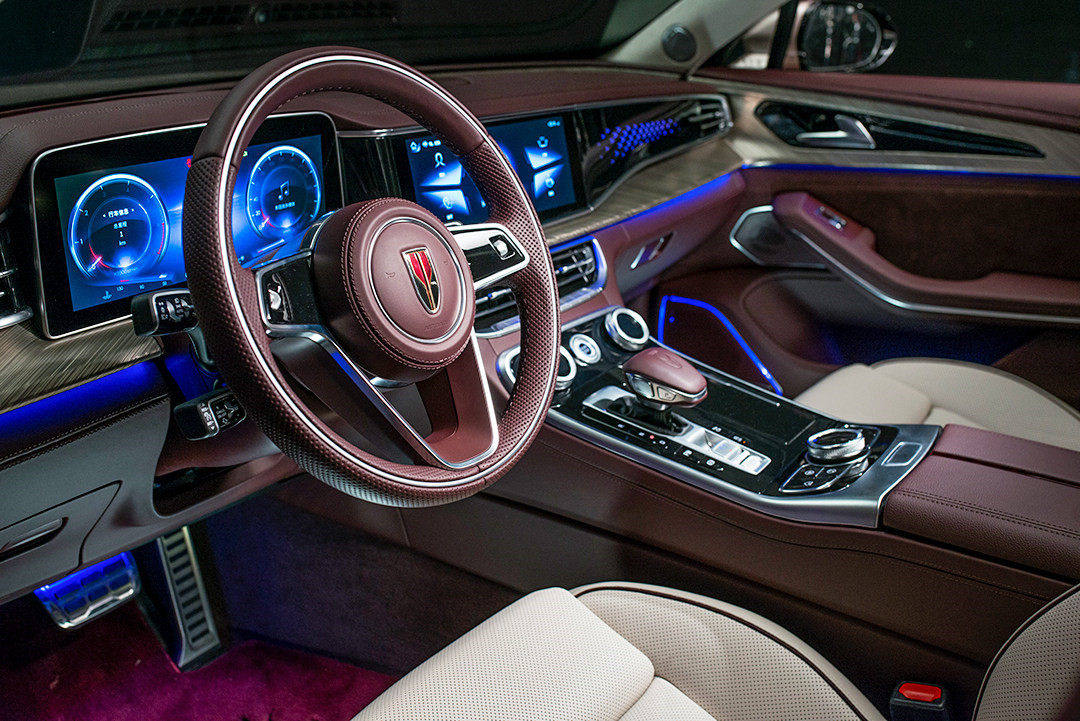 除了外观让人惊叹以外,红旗H9内饰方面同样营造了出色的豪华感。采用了大量木纹、皮革和镀铬材质进行装饰的同时,还配备12英寸宽幅HUD抬头显示、流媒体后视镜、全液晶仪表、大尺寸中控屏,同样是豪华与科技感并存。