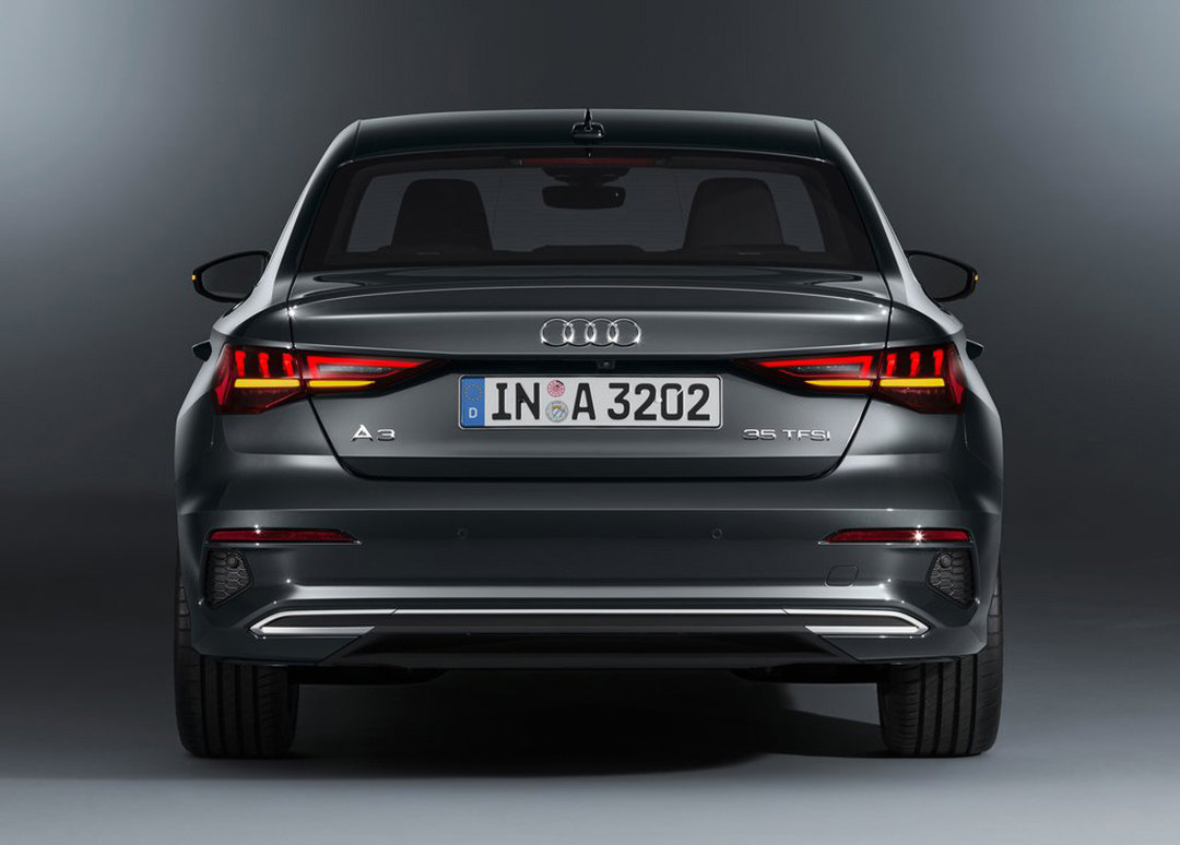 全新A3后灯组灯腔结构与奥迪A系列轿车家族看齐,只不过内部“眼睫毛”数量相对更稀少,家族定位使然。全新A3三厢版在宣传配色方面采用了偏灰绿的金属漆,相比现款主打的红、白两款珠光漆,全新A3三厢版更具性能味。