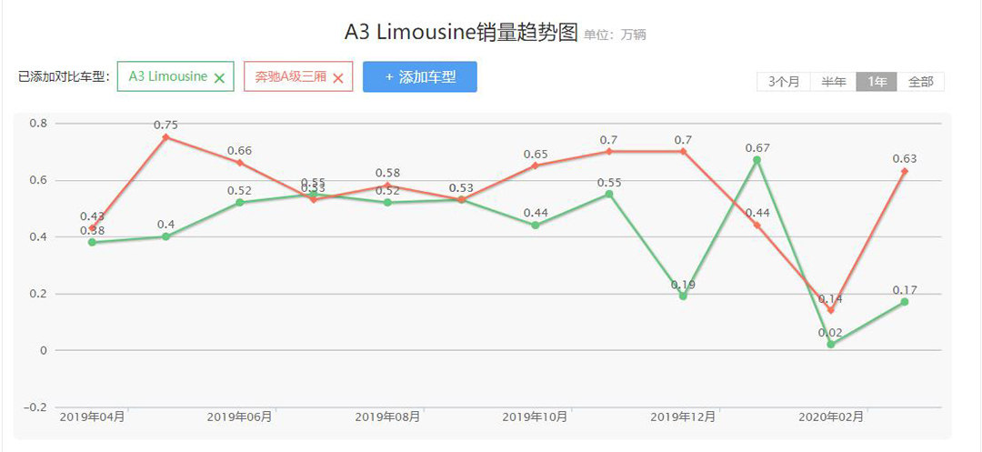 如果只比较三厢版车型,奥迪A3 Limousine与宝马1系三厢的年销量均不敌新上位的奔驰A级L三厢轿车。要知道在以前这可是A3一家独大的市场细分。不过在细分市场的总量上,现款奥迪A3在国内仍占据上风,根据去年销量数据显示,A3 Sportback与A3 Limousine的总销量高于8.4万辆,仍位列豪华紧凑型轿车细分第一名。
