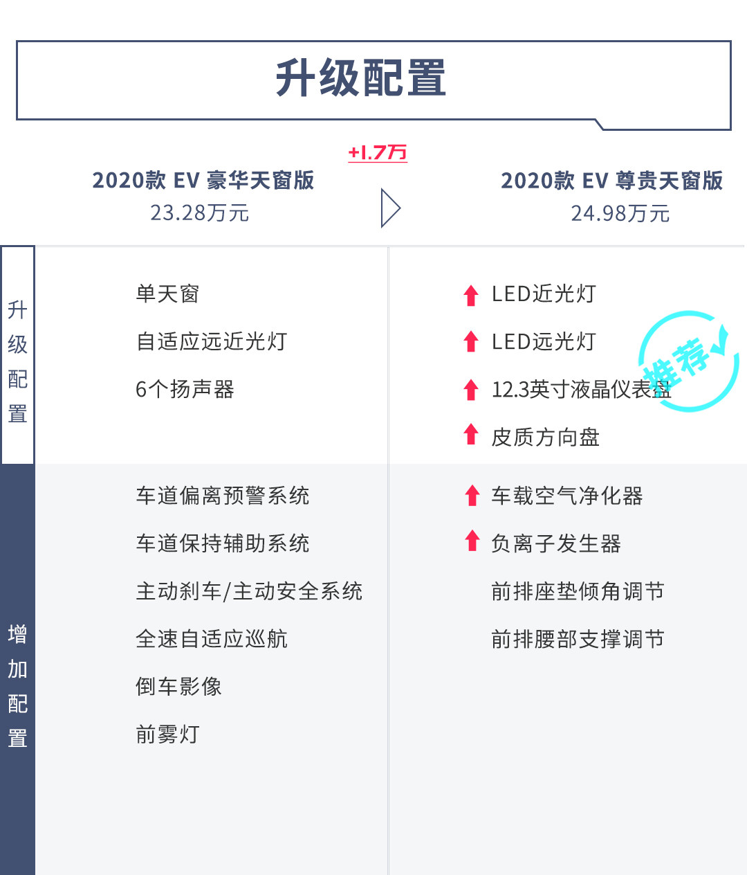 能与C-HR EV基本型款在配置功能上拉开明显差距的型款,要数它的豪华天窗版。这个型款特别在驾驶辅助功能上加入了车道偏离预警、全速自适应巡航等配置。