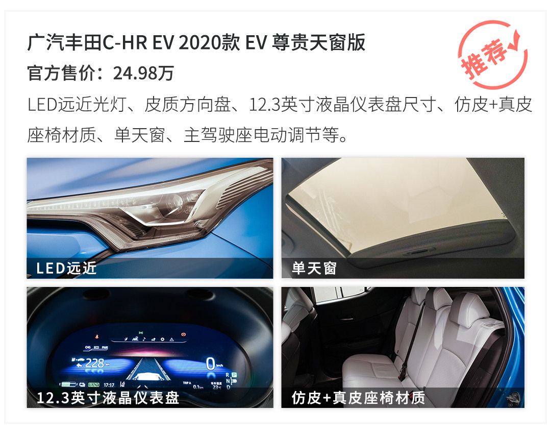 作为一辆丰田旗下在国内的首款纯电SUV,相信上市后会收到不少丰田粉丝的青睐,手上有25万元购车预算的老司机们,如果选择了功能和配置较为完善的尊贵天窗版,相信能得到更优质的用车体验。