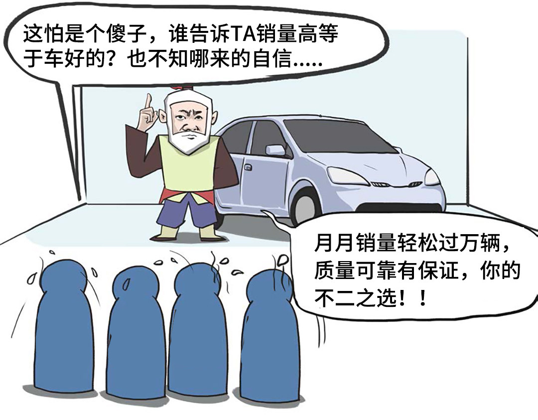 因此,诸如“当你买车不知道买什么车好,就照着销量高的去买,肯定不会吃亏;销量高即意味着车靠谱”的言论在坊间盛传,并且被坊间许多准备购车的百姓奉为圭臬。