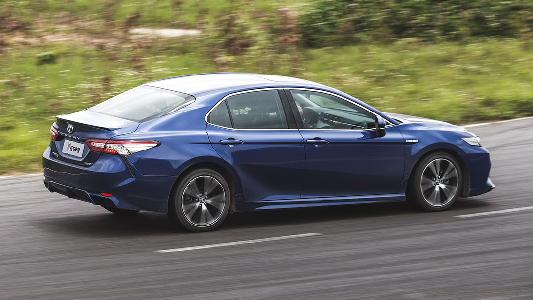 首先上场的是袁启俊驾驶的丰田凯美瑞2.5HS,这款采用运动版外观套件的车型看着相当凶狠,全新的TNGA架构也以降低重心、优化滚动中心、改善操控性能为重要卖点;加上综合输出功率略高于本田雅阁 锐·混动的“动力优势”,凯美瑞似乎有着很大胜算。
