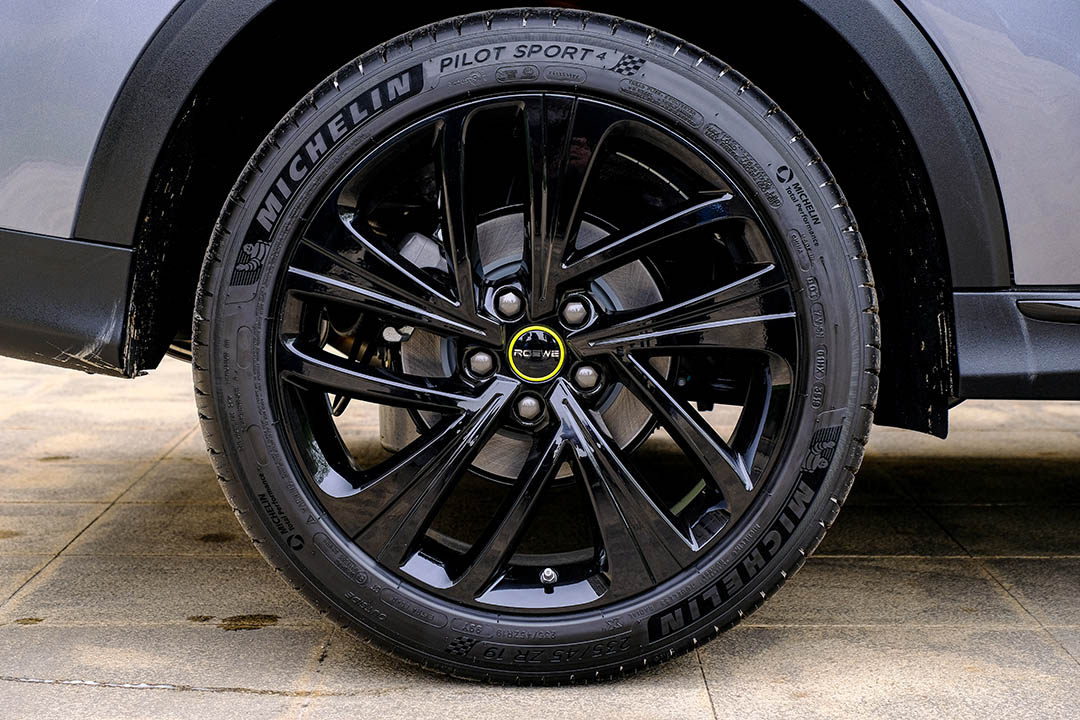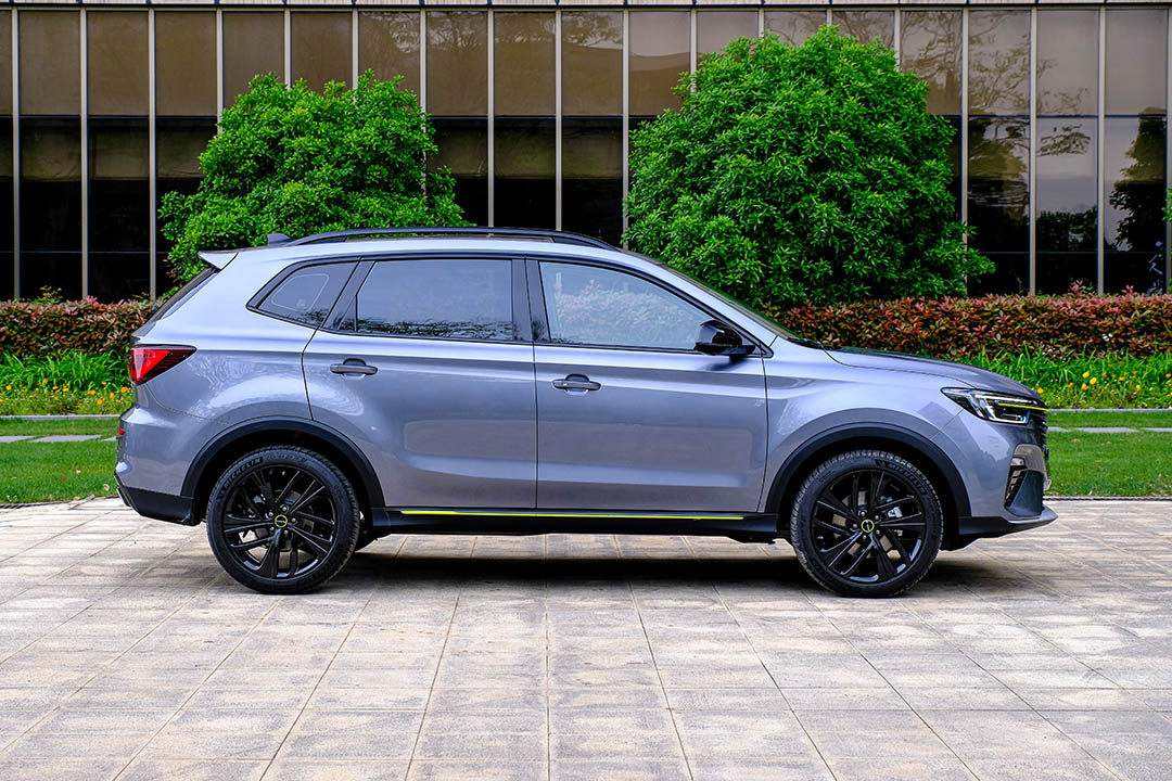 侧面的线条可以看出现款车型的影子,不过在轮毂样式上发生了变化。新车安排上了熏黑轮毂,并且有荧黄元素点缀,官方宣称荣麟旋风轮毂。具体的车身尺寸并没有公布,但作为中期改款,教授相信应该变化不大。
